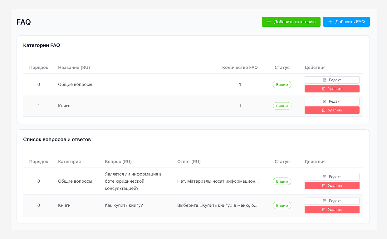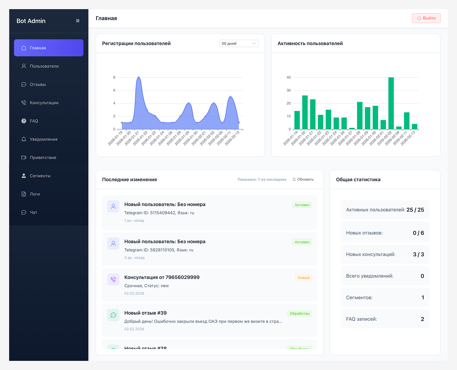 Создали Telegram-бота с ИИ-агентом, который консультирует пользователей и отвечает на юридические вопросы. Поддержка трёх языков (русский, английский, арабский), интеграцию с CRM Битрикс и админ-панель для управления диалогами, контентом и логикой бота.